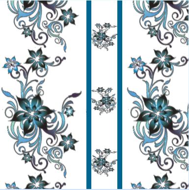 Stylised flower sprays in a regency type, vertical stripe pattern with deep turquoise accents.