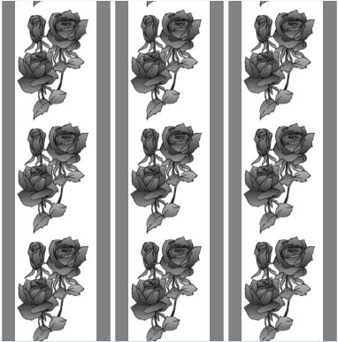 This very basic vertical pattern features a pair of black chiffon roses and bud, alternating with stripes of charcoal grey.
