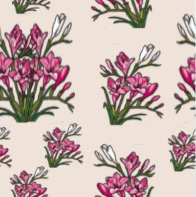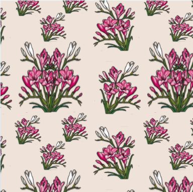 Who could ignore the delicious perfume of a bunch of freesias? I could not; and these pink and white freesia flowers make a pretty floral pattern.