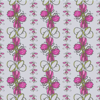 A tangle of lily flowers and ribbons forming loops, in this attractive vertical pattern.