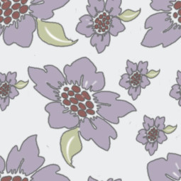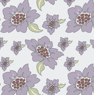 A scatter pattern of flowers in two sizes, with an overall mauve/grey tone.