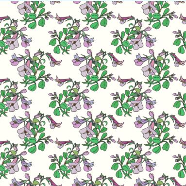This pattern relies on the pretty mauve and lilac flowers and rough green leaves of the native peppermint bush for it's appeal.