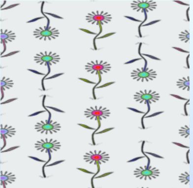 A single, line drawn daisy in three colours in a top and tail vertical pattern.