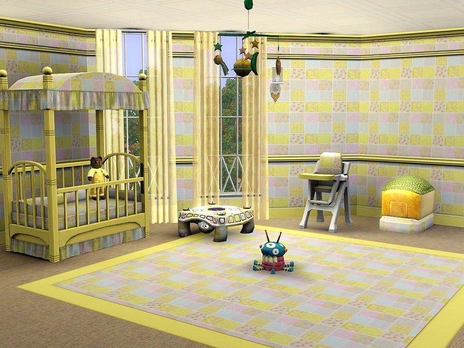 A smple patchwork pattern in yellow tonings - equally at home in the nursery or the boudoir.