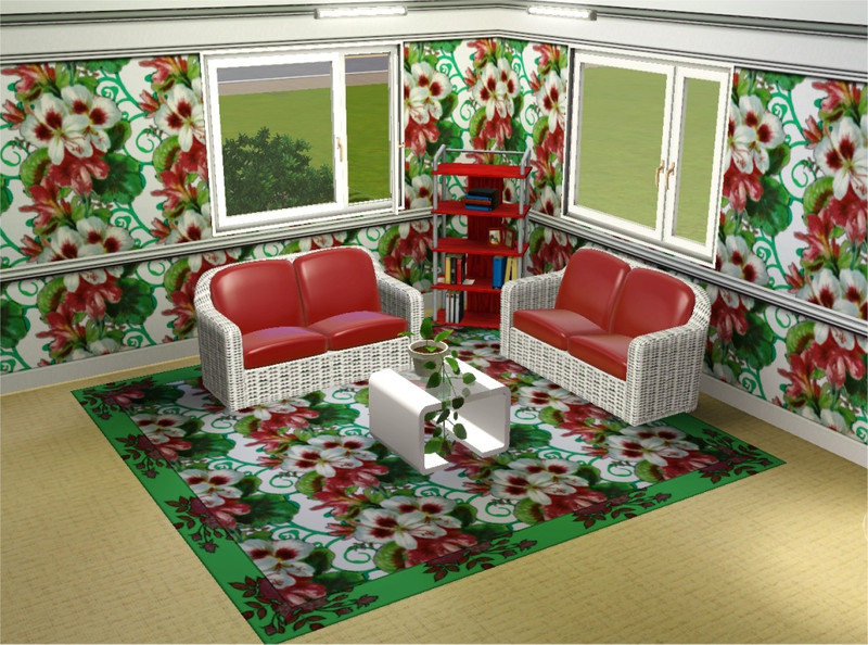 Massed red and white pelargoniums create this bright chintzy pattern. There are 3 recolourable channels, but the pattern works best in it's default form.