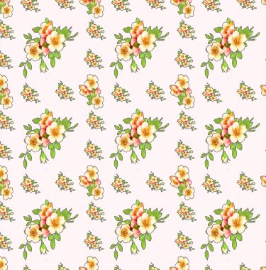 Delightful creamy roses with a pink blush, surrounded by green foliage - an appealing repeat pattern