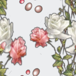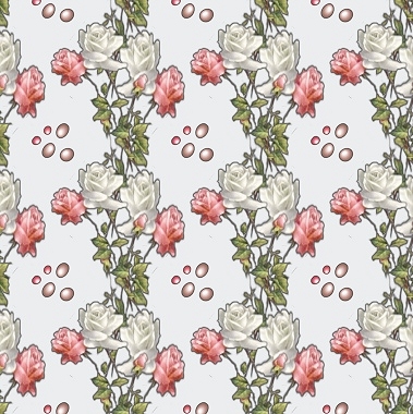 A red rose, a white rose and some floating pink bubbles have been used to create this delicate pattern.