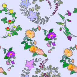 A bright and cheerful spring pattern featuring circlets and wreaths of colourful flowers.