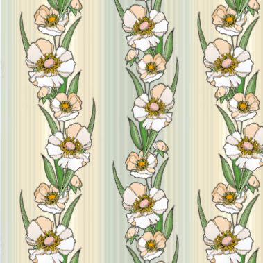 We all know that cream rises to the top of a glass of milk . . . and so do these wide open creamy flowers rise up the pattern in a striking vertical design.