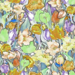A rather surrealistic, almost Van Gogh-eque, depiction of a field of tulips forms the basis of this different pattern.