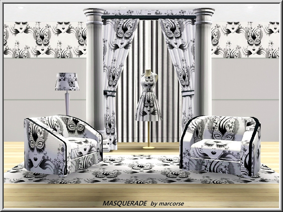 Sims 3 — Masquerade_marcorse by marcorse — Fabric pattern: masked women's faces and style flourishes.