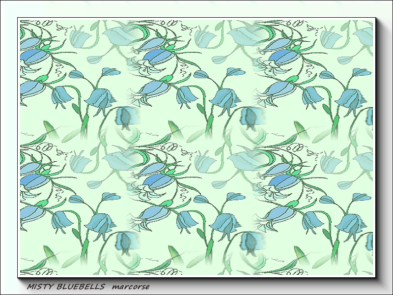 A misty repeat pattern featuring little blue bell flowers.