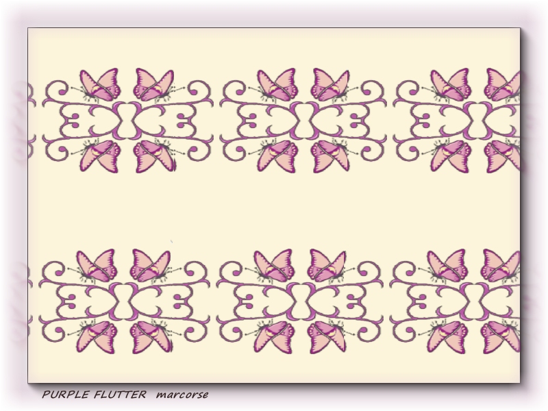 Purple butterflies and iron lace in a simple mirror repeat pattern