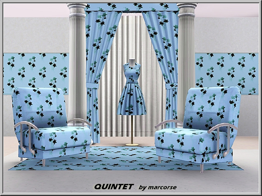 Sims 3 — Quintet_marcorse by marcorse — Fabric pattern: floral quintets in green and navy on pale blue