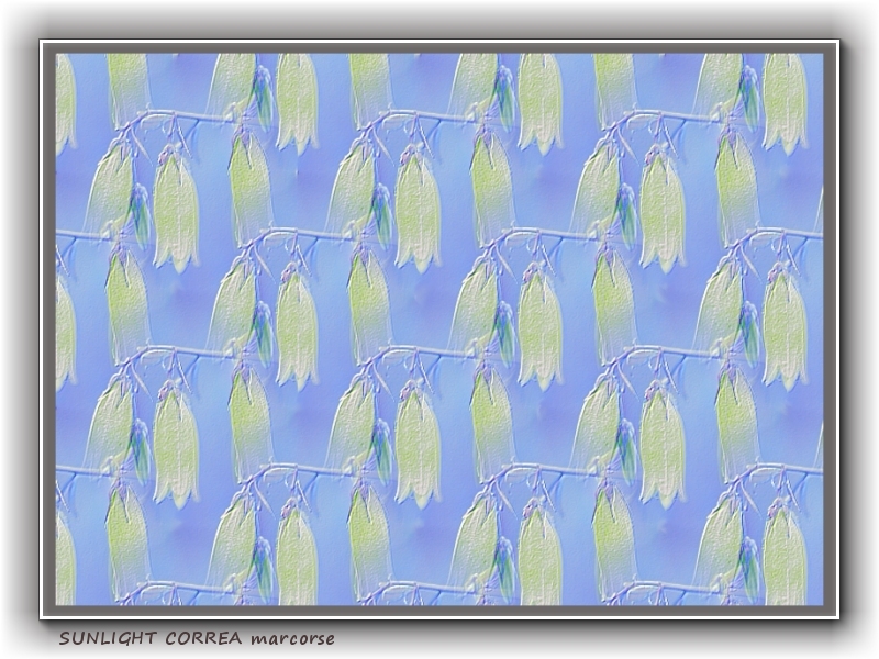 Australian native correas in a pretty, sunlit design on blue.