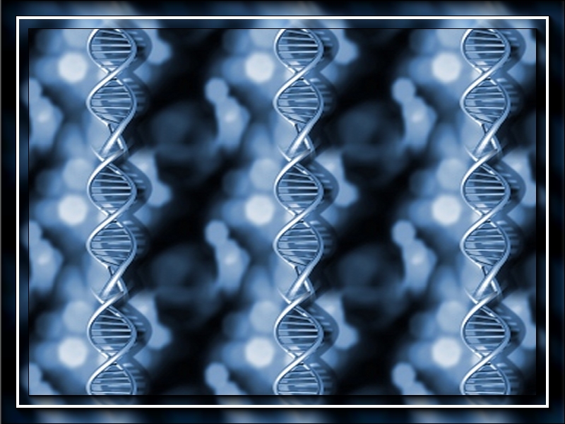 Magnified strands of DNA, coloured blue and repeated in a vertical pattern.