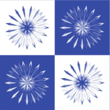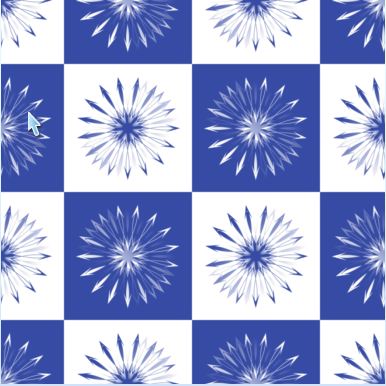 Just a basic starburst geometric shape in blue and white, but the motifs made me think of dandelion puffs . . .so, blue puffs it is.