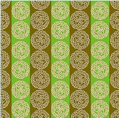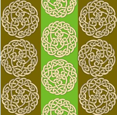 A classic celtic knot in a circular design on a vertically striped background.