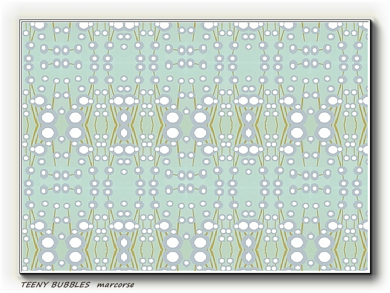 Teeny-tiny bubbles, random lines and larger bubbles - in a regular repeat pattern.