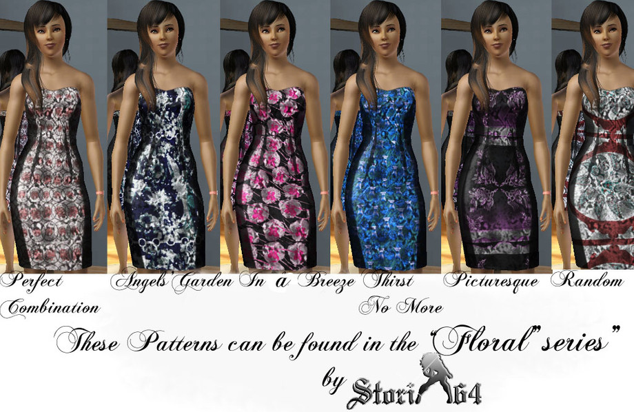 This pattern consists of flowers and stems with the affect of blowing in the wind.