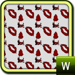 Vanity series pattern 1 of 6 'Lip Candy' consists of pairs of lips and tubes of opened lipstick.