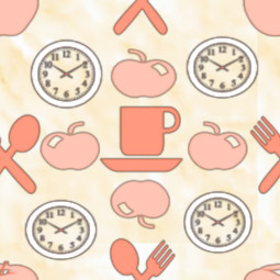 A subdued, but effective, repeat pattern of everyday kitchen items.