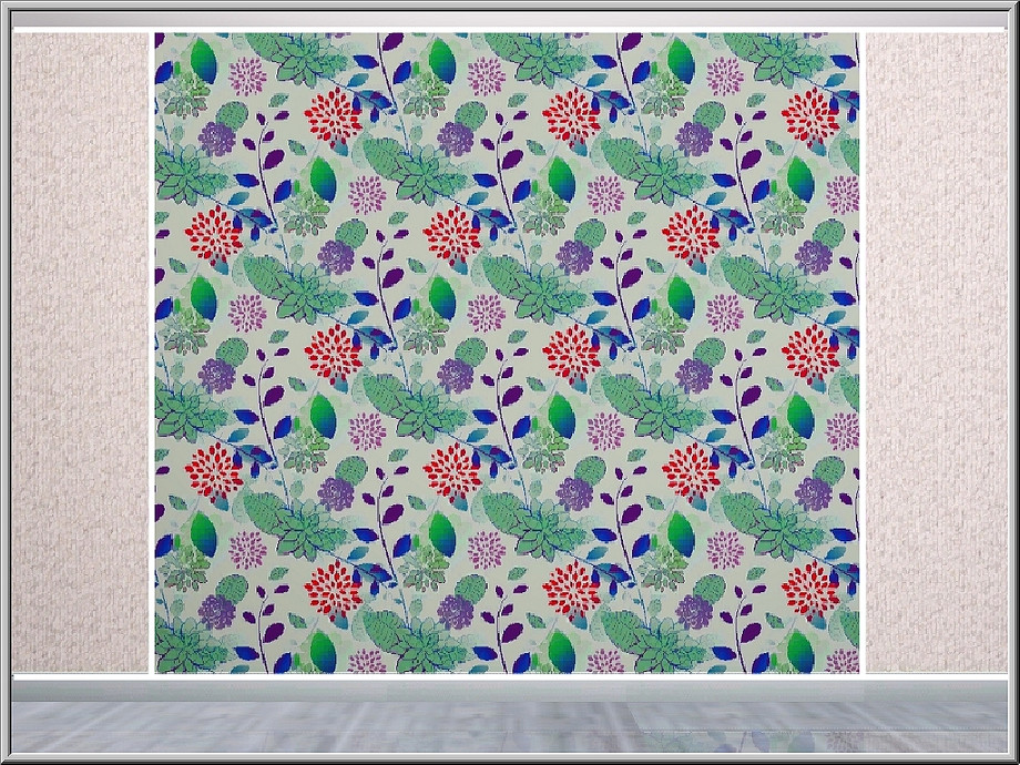 Themed pattern: hand painted flowers and leaves in green,blue and red