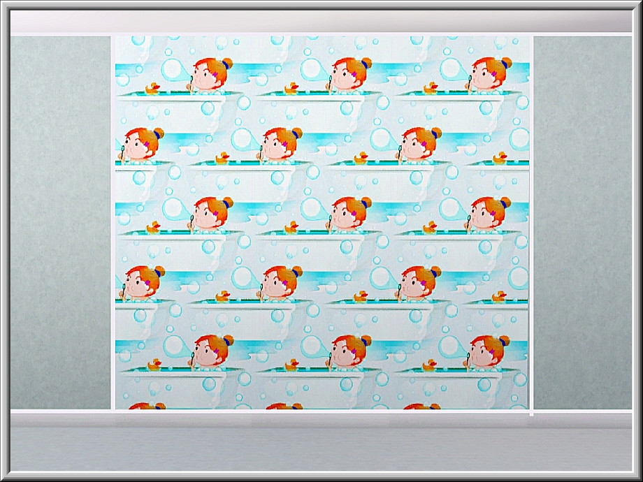Themed pattern little girl in the bath, blowing bubbles.