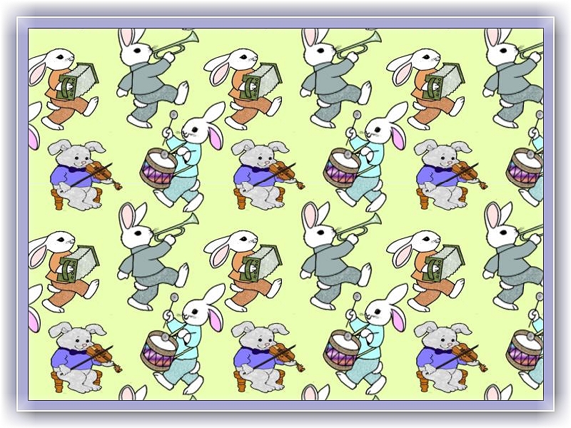 Little boy rabbits in a marching band . . apart from the tired fiddler, who sits!
