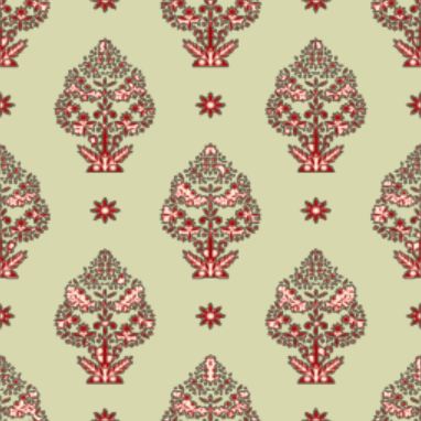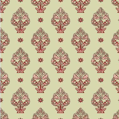 A pretty, lacy tree in pink and red on a cream background in this repeat pattern.
