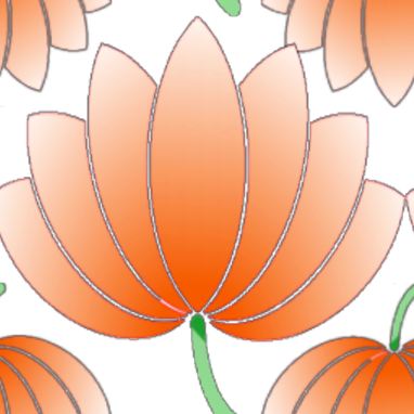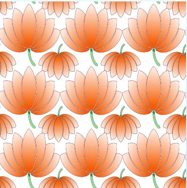 A large, orange lotus blossom with a green stem is the focus of this striking repeat pattern.