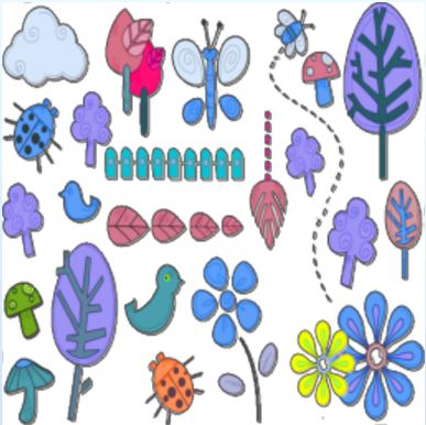 A fun, novelty pattern showing stylised versions of some of the things Mother Nature provides in the great outdoors.
