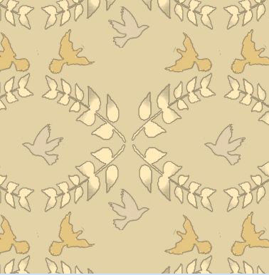 A 'peaceful' and subdued pattern featuring the internationally recognised symbols of Peace - the dove and the olive wreath.