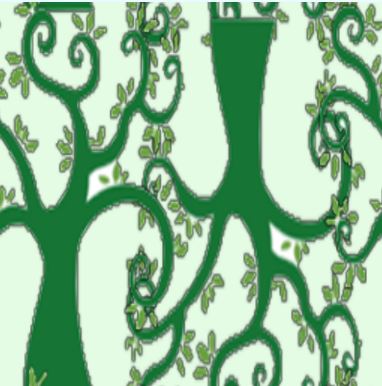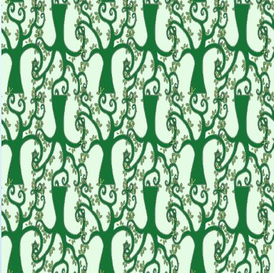 Appropriate to the halloween season, perhaps - but not at all threatening - twisted, leafy trees in shades of green and white.