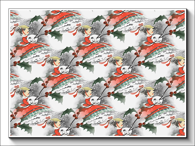 A Victorian style Christmas design featuring a young lady, dressed traditionally and carrying a bough of holly
