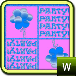 Balloons on tiles alternating with the word 'PARTY' on another