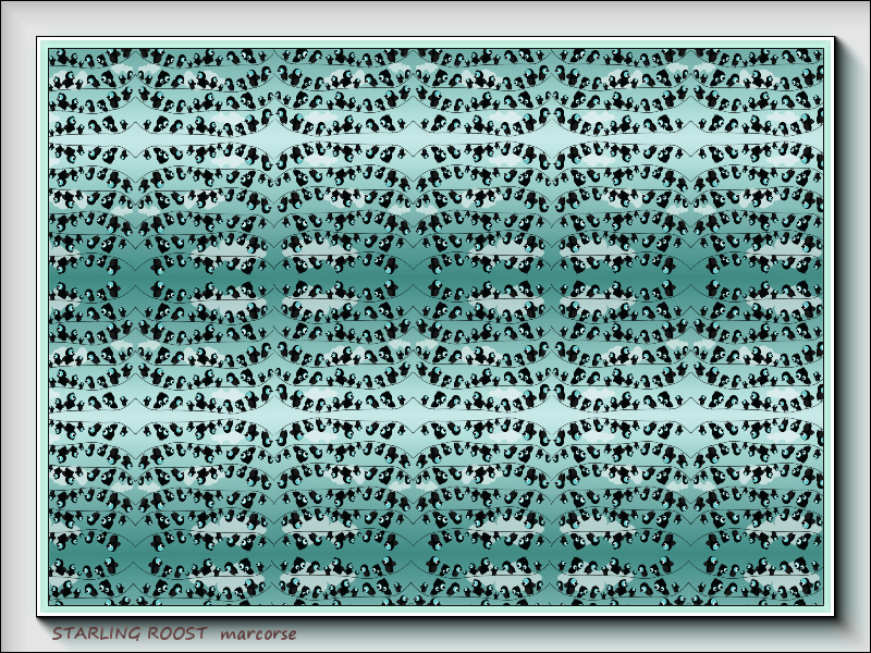 I have no idea of the provenance of this image, but it has been in my collection for a good many years . . I always smile at these cartoon starlings roosting on the power lines.