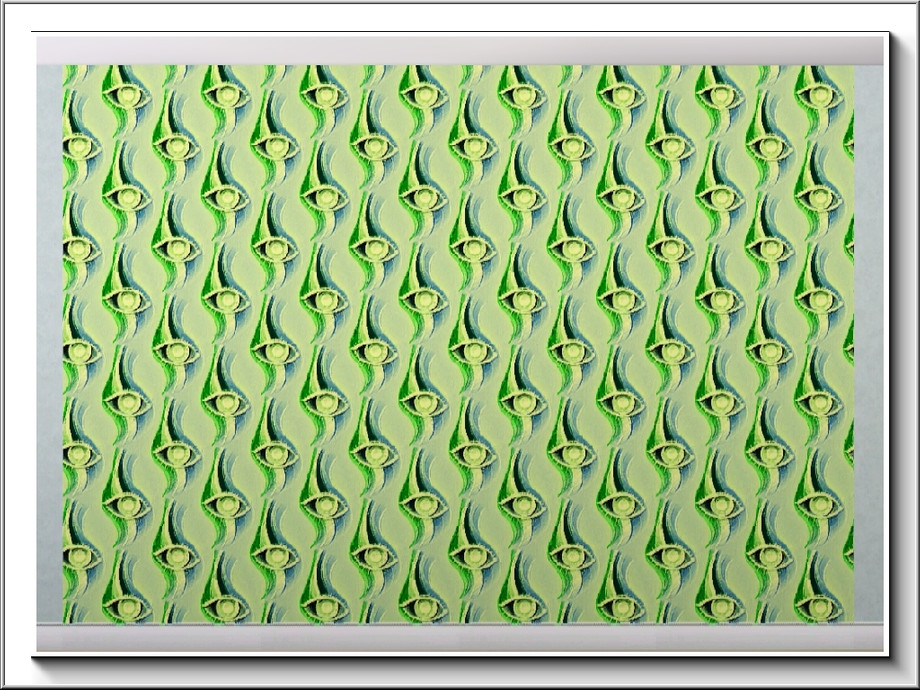 Themed pattern: stylised eye shapes in a regular repeat design in green