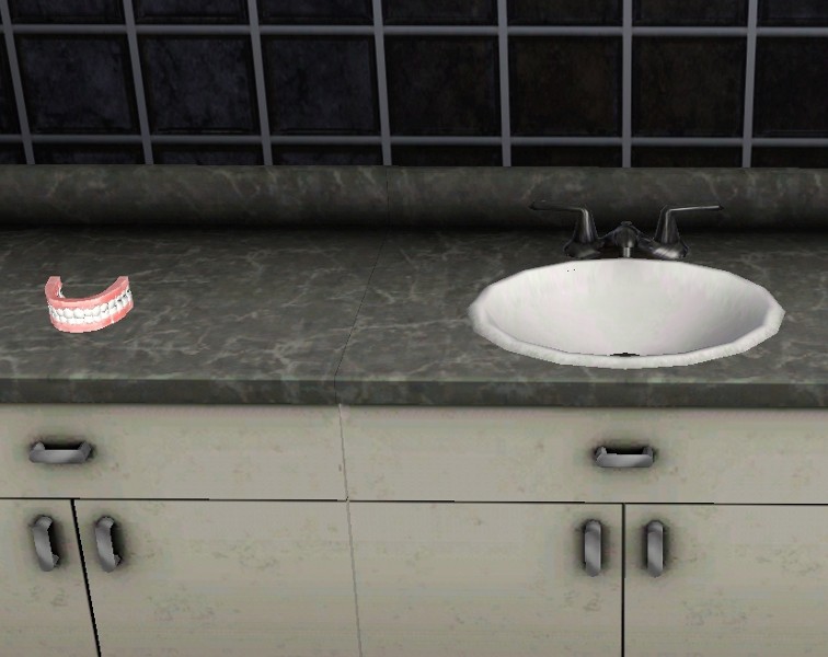 For your elder sims' bathroom counters. 2 channels. First channel is the teeth, second channels is the gums. Found in decorative misc.