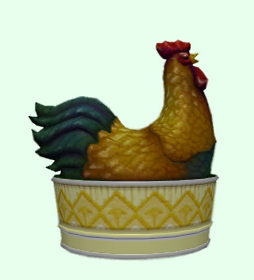 The kitchen chicken. Now better than ever. Change the color of the base to match your kitchen. Lisa9999 TSRAA. Cloned from the original Sims 2 chicken.
