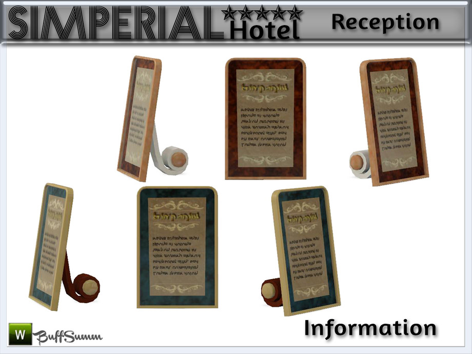 Infosheet for the receptiondesk. Part of the *Hotel Simperial Series - Reception*