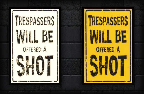 Scare off pesky vagrants by threatening them with your hospitality. Includes three versions!