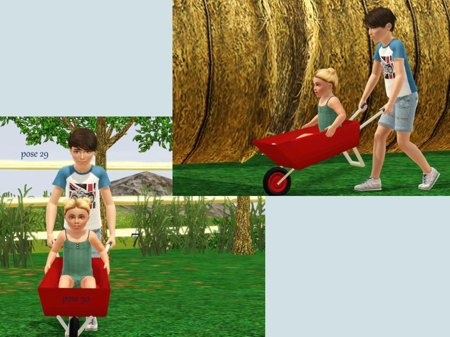 A few poses may need to be slid into place using the moveobjects on cheat. The wood bucket needs to be raised up using the OMSP mod. The wheel barrow requires the tipsy mod set to 15.