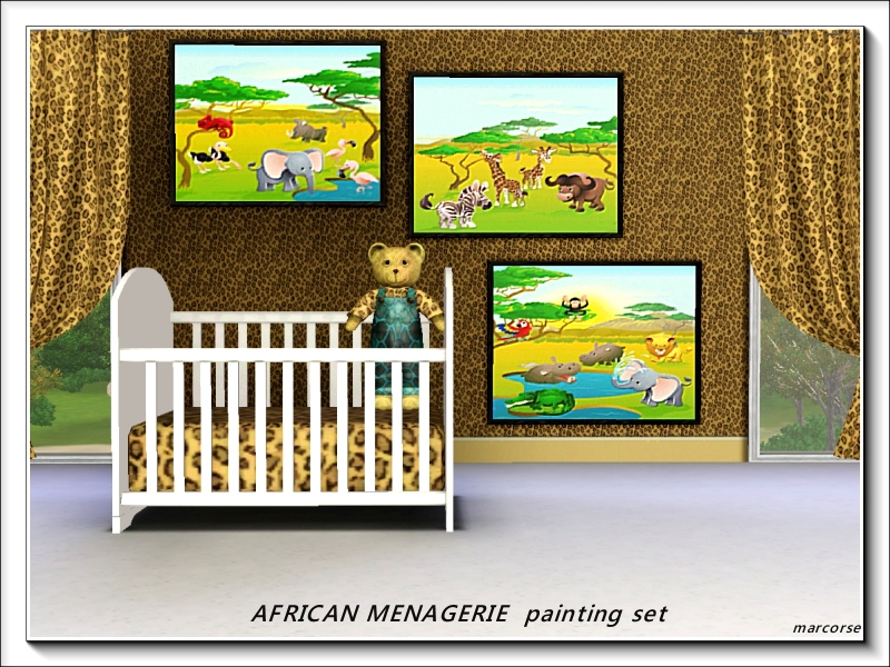 African Menagerie painting set was made for exclusive use on TSR. Do not re-upload outside of TSR, nor claim it as your own work, either as the full set or individually. Naturally, if you so desire, the paintings may be downloaded separately, rather than as the set, by going to the relevant previews shown on this page