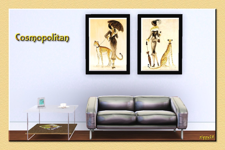 A set of two pictures called 'Cosmopolitan' by Karen Dupre. Cloned from the Maxis ' Modern ' picture. Matching re-coloured frame (still re-colourable in game)