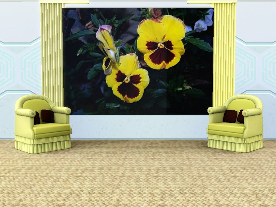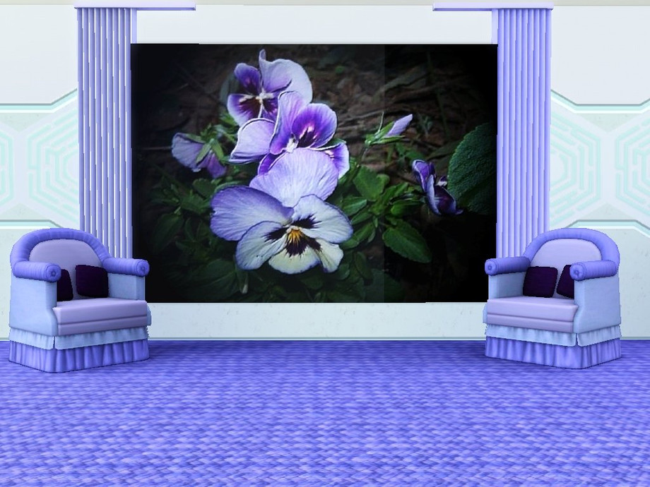My paintings were cloned onto a Pralinesims mesh, used with her kind permission, and mesh remains her property. Wall Sets are cloned onto a default wall.