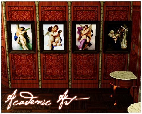 7 paintings to hang on your Sims' walls by Academic Artists, William-Adolphe Bouguereau, Alexandre Cabanel, and Leon Perrault.