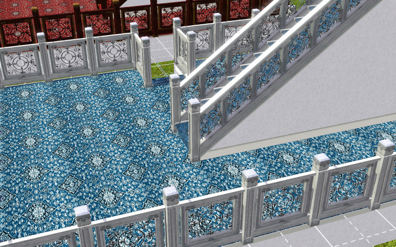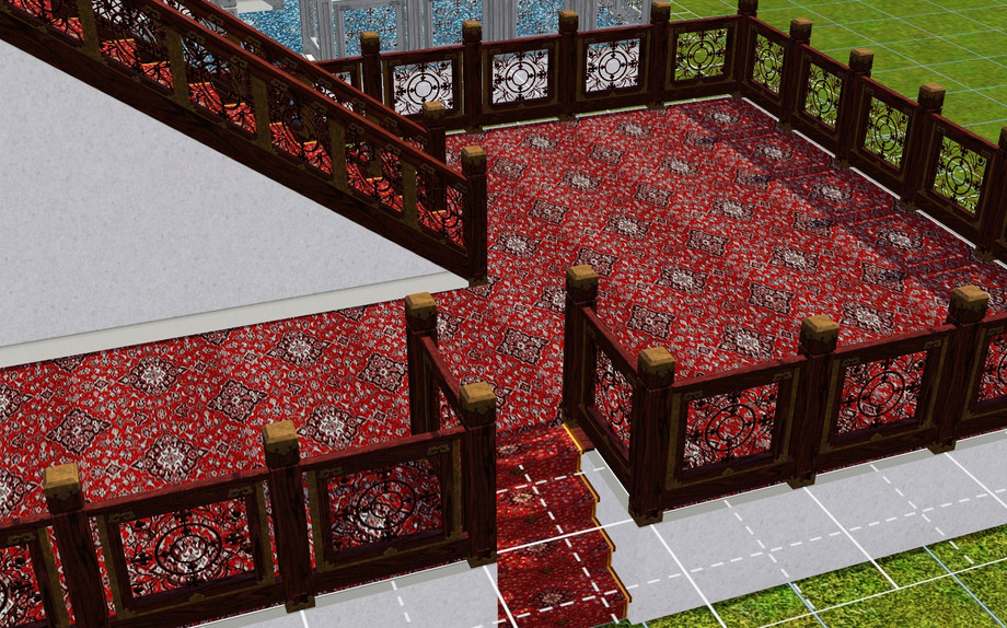 My Jugendstil... Art nouveau variation of the asian stair, railing and fence with matching carpet textures in redtones and blue/white tones.