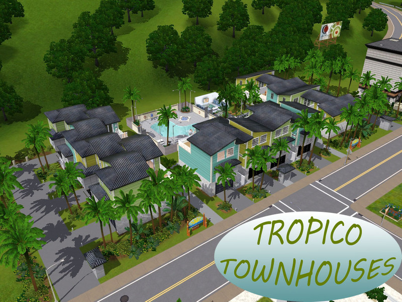 The Tropico Townhouses replaces the "faux" apartments in Sunset Valley with actual apartment complex lots. This new Tropico Townhouse Complex, makes an effort to emphasize the near-beach location that the lots are situated on. The units range from a singles pad, to a couple's unit starting out, to a nice unit for a family with a child. So make the switch from the boring to the tropical and refreshing with these lots!