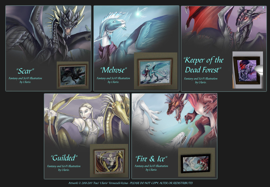 A set of of my own fantasy illustrations made into paintings for your sim's home!